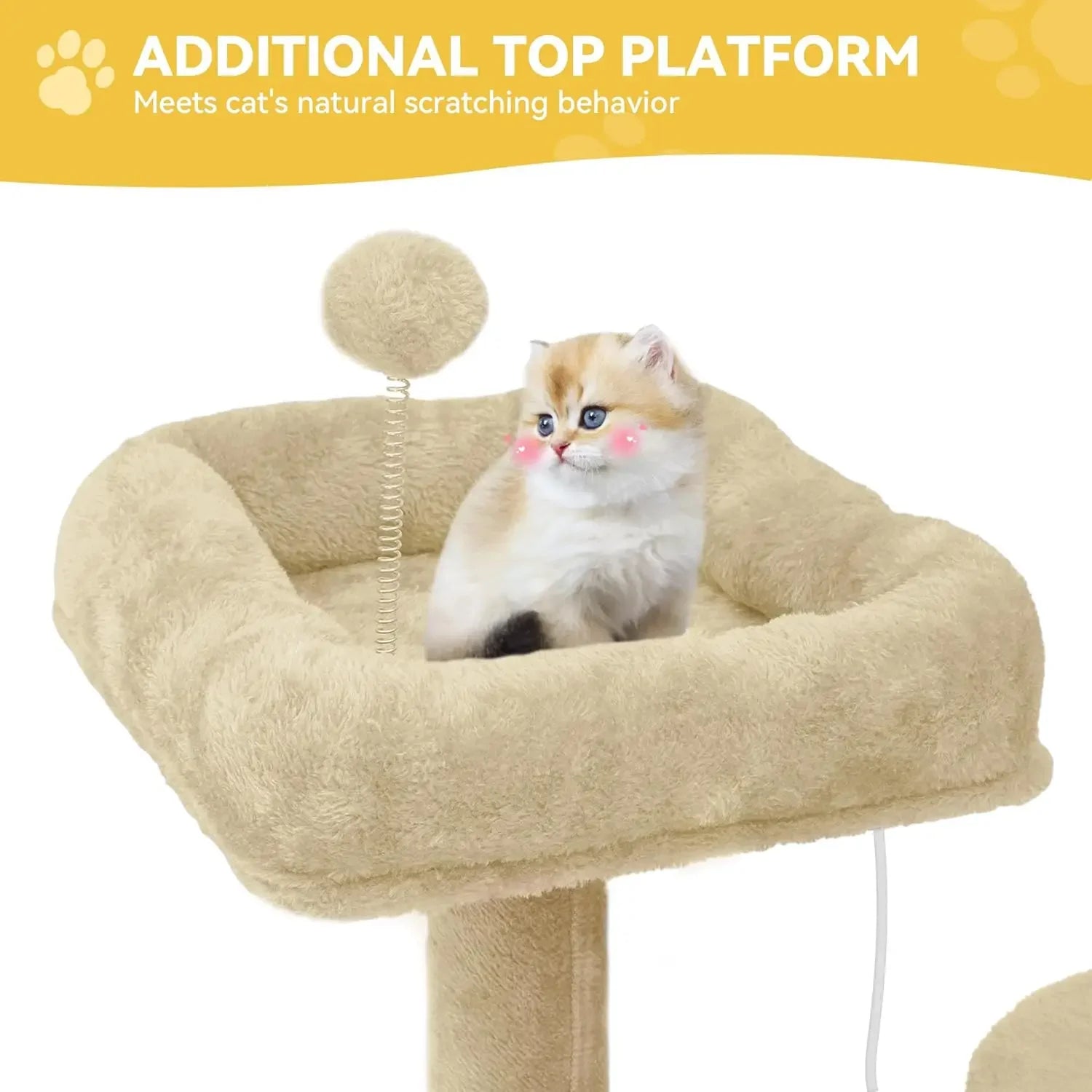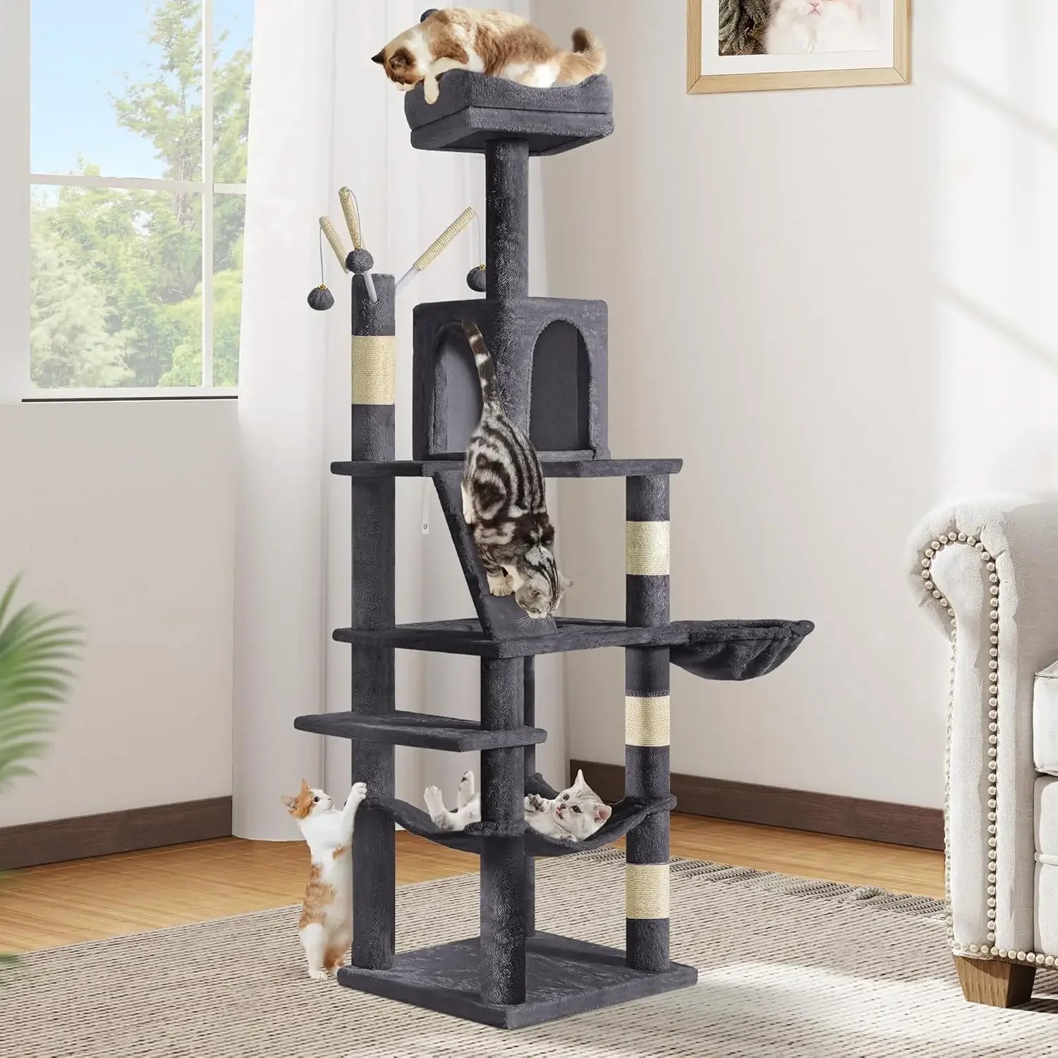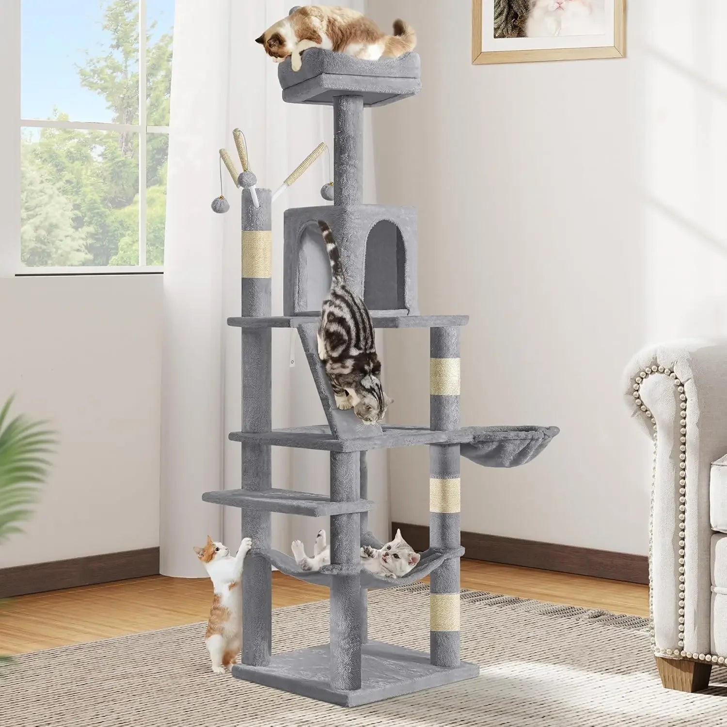 - Cat-Friendly Scratch Oasis: Understanding a cat's innate need to scratch, we've equipped this cat tree with durable sisal posts; They encourage healthy clawing habits, preserving your home furniture while satisfying their natural instincts