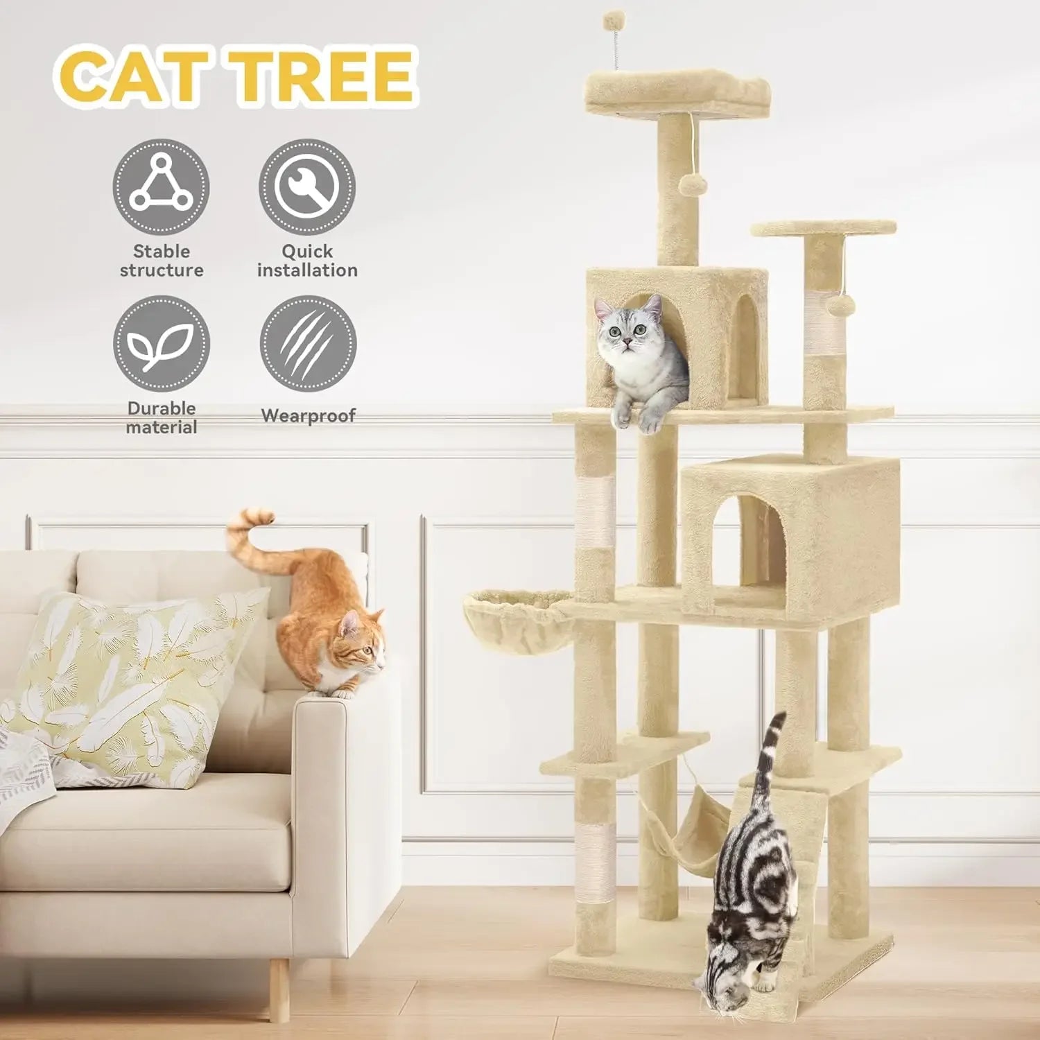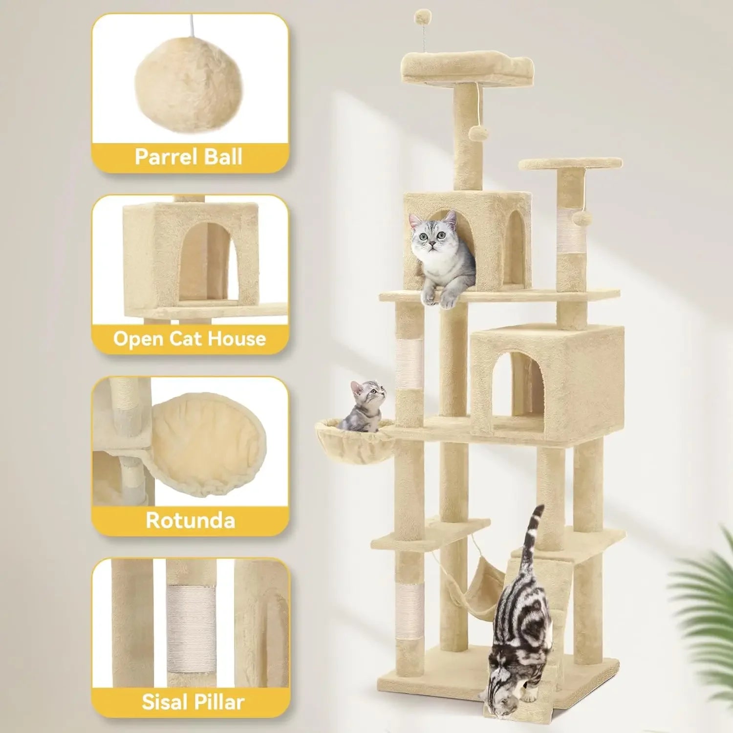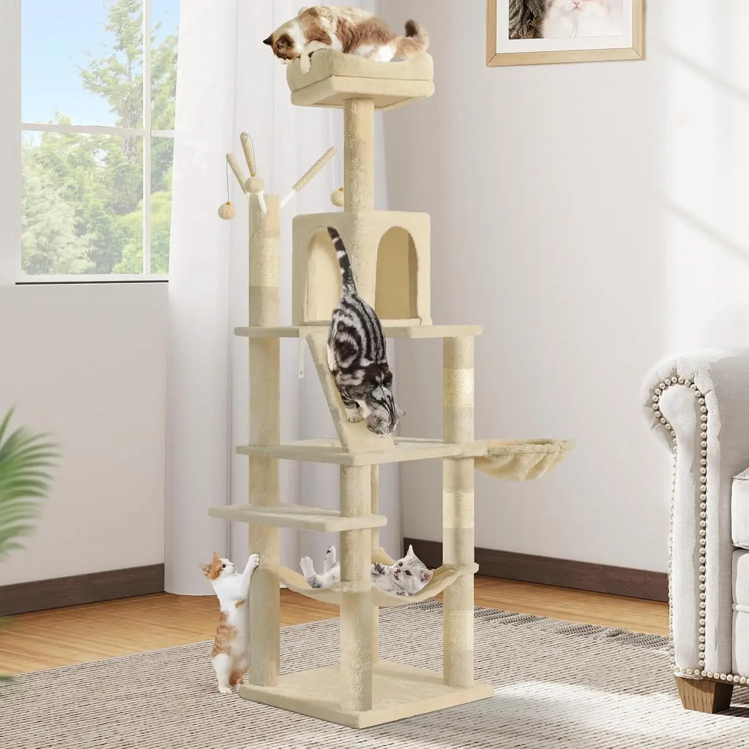- Cat-Friendly Scratch Oasis: Understanding a cat's innate need to scratch, we've equipped this cat tree with durable sisal posts; They encourage healthy clawing habits, preserving your home furniture while satisfying their natural instincts