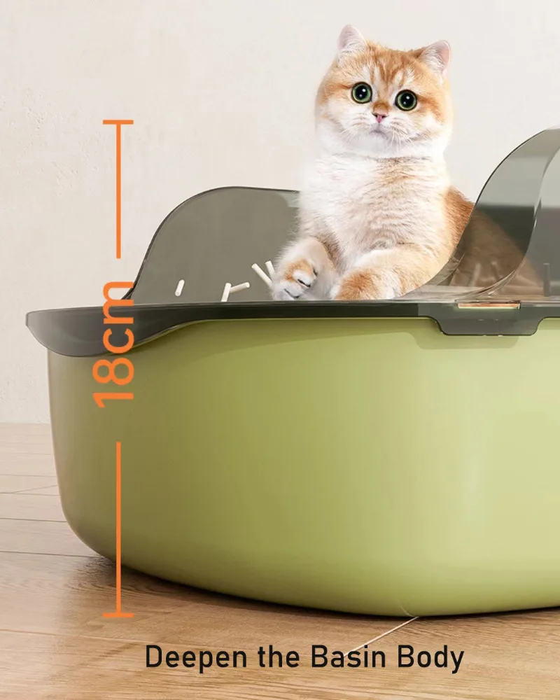 【Easy to Clean 】: Open Tray is removable ,High sided cat litter tray, simple structure, detachable design, easy to clean, and reusable.