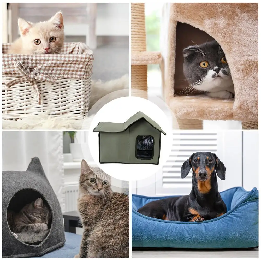 4.Practical Choice: Our Outdoor Pets Cat House is a detachable, multifunctional option for cats and puppies. Whether your furry friends are sleeping in garages, porches, or barns, or simply at home, they'll stay warm and cozy thanks to the durable, waterproof material.