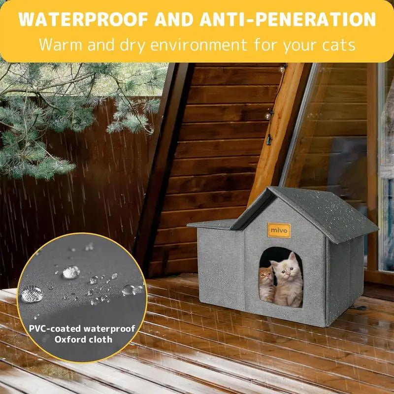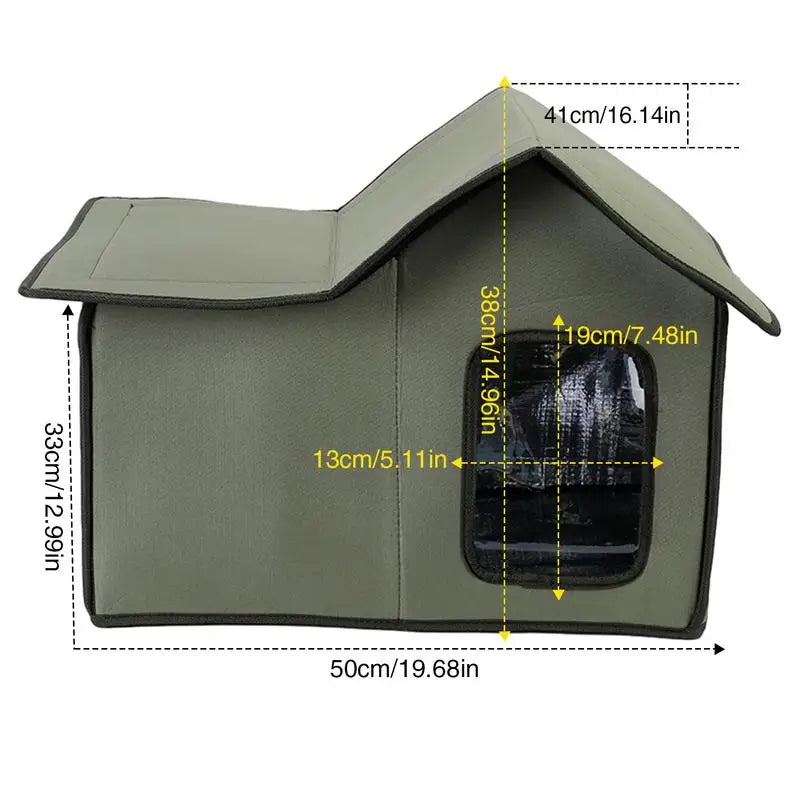 2.Waterproof Material: Crafted from waterproof oxford material, this outdoor cat shelter provides reliable protection from harsh elements. Sturdy frame and slip-resistant bottom maximize durability and stability for pets.