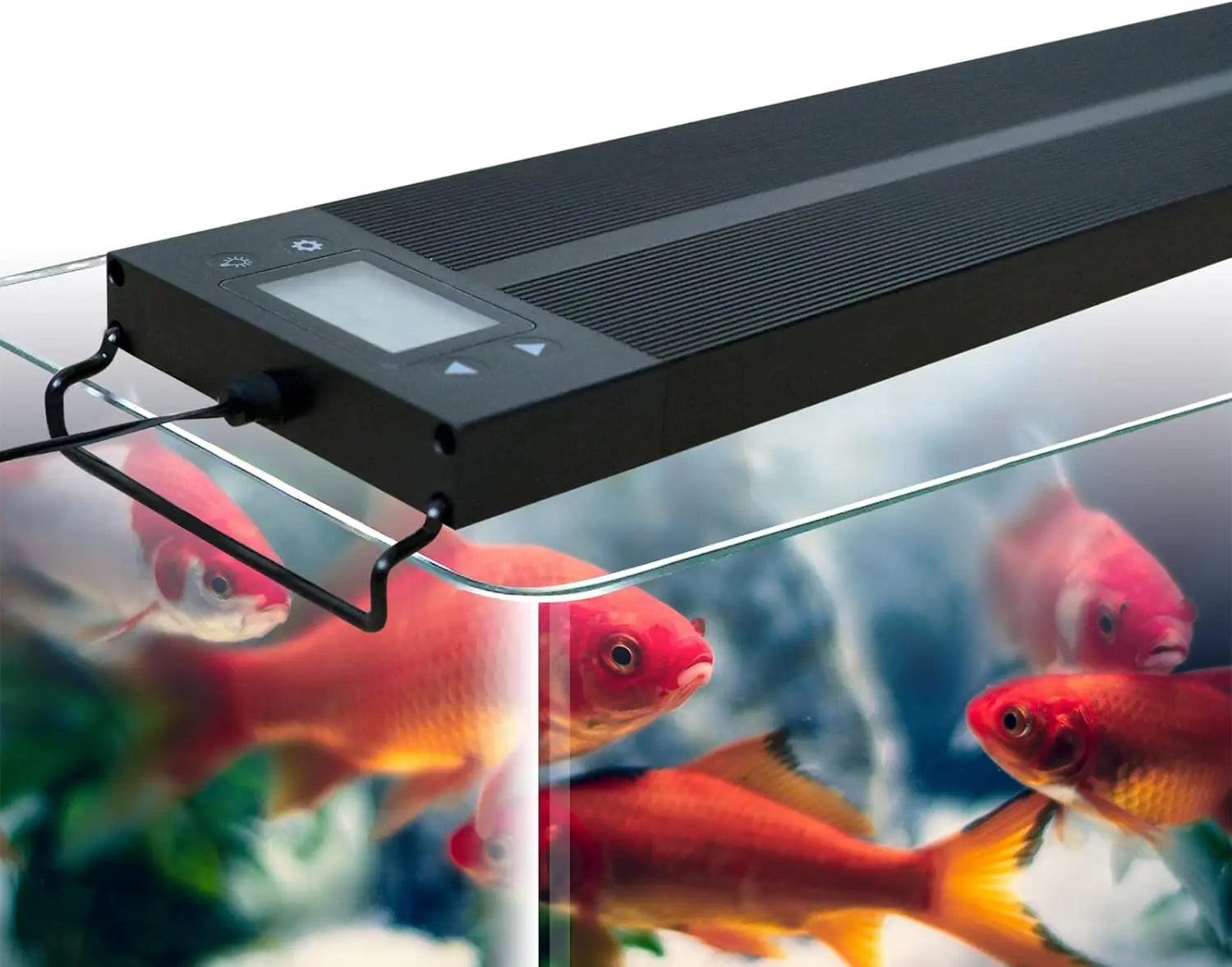 Easy installatin The ergonomic design makes light installation easy. Just place the fish tank light on top of the fish tank, adjust the length of the bracket to fit the fish tank, and connect the power cord.Extendable brakets allows this LED light to fit most aquairum fish tanks 60-75cm/24-30 inches wide.Before use, please remove the protective film.