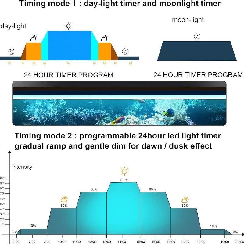 User-defined DIY mode, the aquarium light can be adjusted to simulate various periods of the day