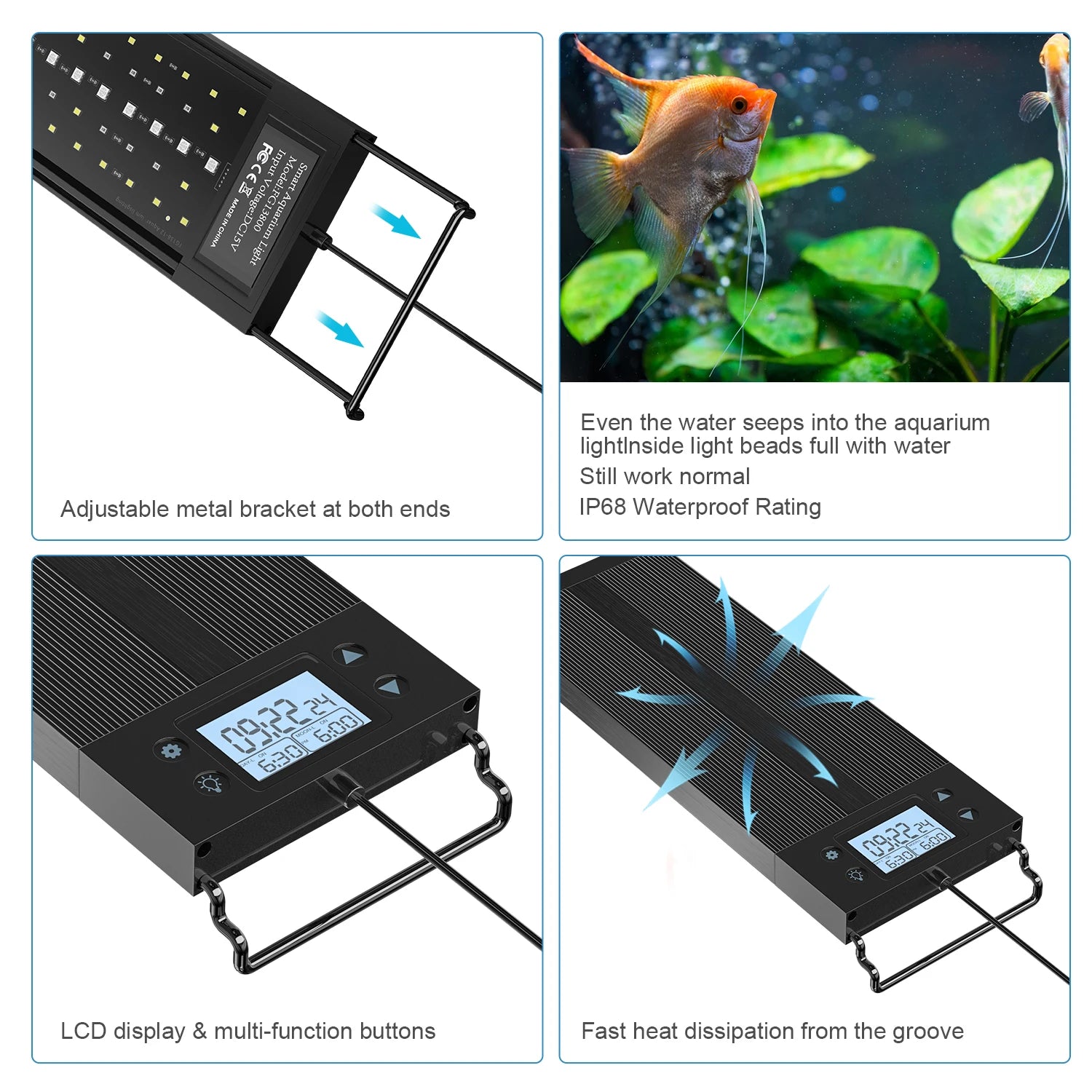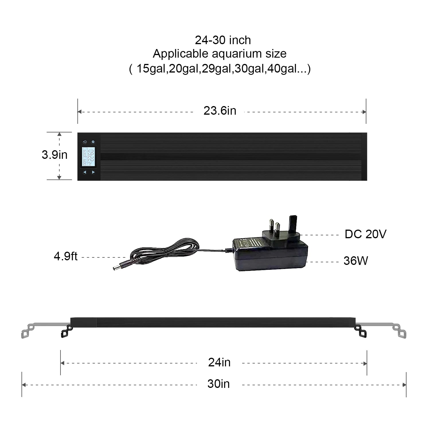 1*Aquarium LED Lighting 2*Metal brackets 1*AC/DC power adaptor 1*User manual